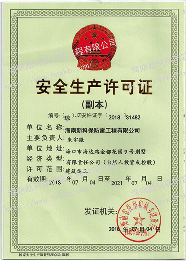 海南新科保防雷工程有限公司是一家集防雷技術(shù)研究、防雷檢測、防雷工程設(shè)計施工、安防監(jiān)控工程設(shè)計施工、建筑智能化施工、建筑水電施工于一體的高科技公司。在相關(guān)主管部門監(jiān)管下,致力于為客戶提供專業(yè)的安全防護、建筑智能化、水電技術(shù)等優(yōu)質(zhì)產(chǎn)品和工程服務(wù)。